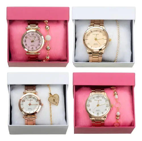 4 Relógio Feminino Pulseira Atacado Prova Dágua Original Com caixa Para Presente Cores Variadas