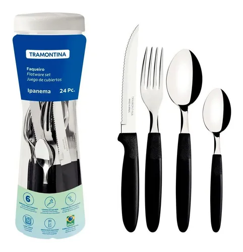 Faqueiro Ipanema Aço Inox E Cabo 24 Peças Preto Tramontina