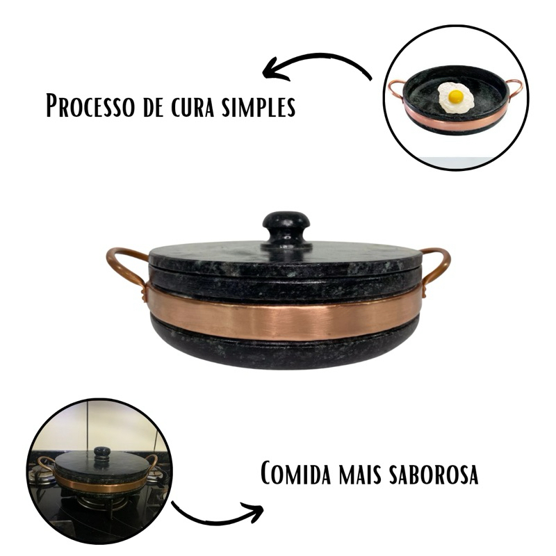 Frigideira de Pedra Antiaderente 24 cm - com Tampa - G Cozinha alça de cobre