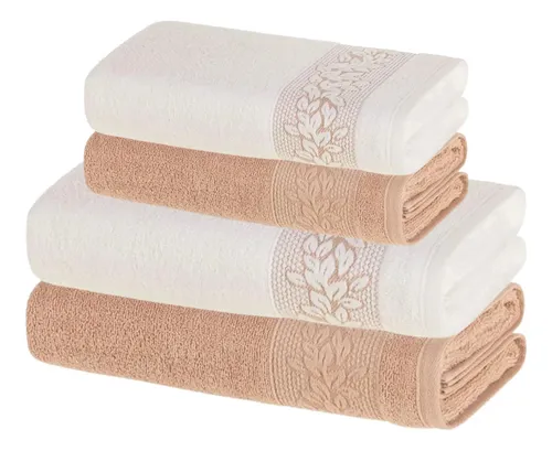 Jogo De Toalhas 4 Pçs Fio Cardado 100% Alg Provence Karsten Branco Argila Provence