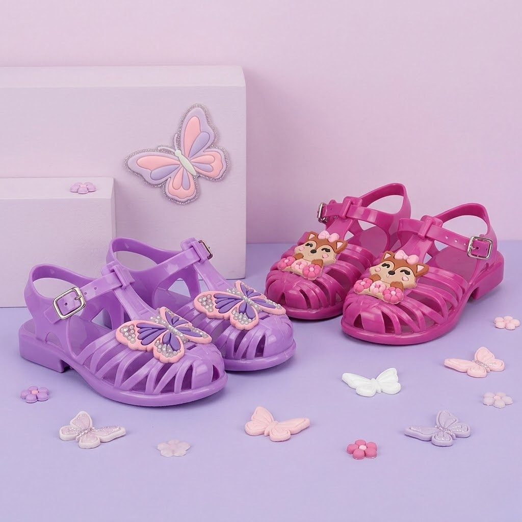 Kit 2 Pares Sandália Infantil Menina Estampada Delicada Confortável e Flexível Oferta Verão