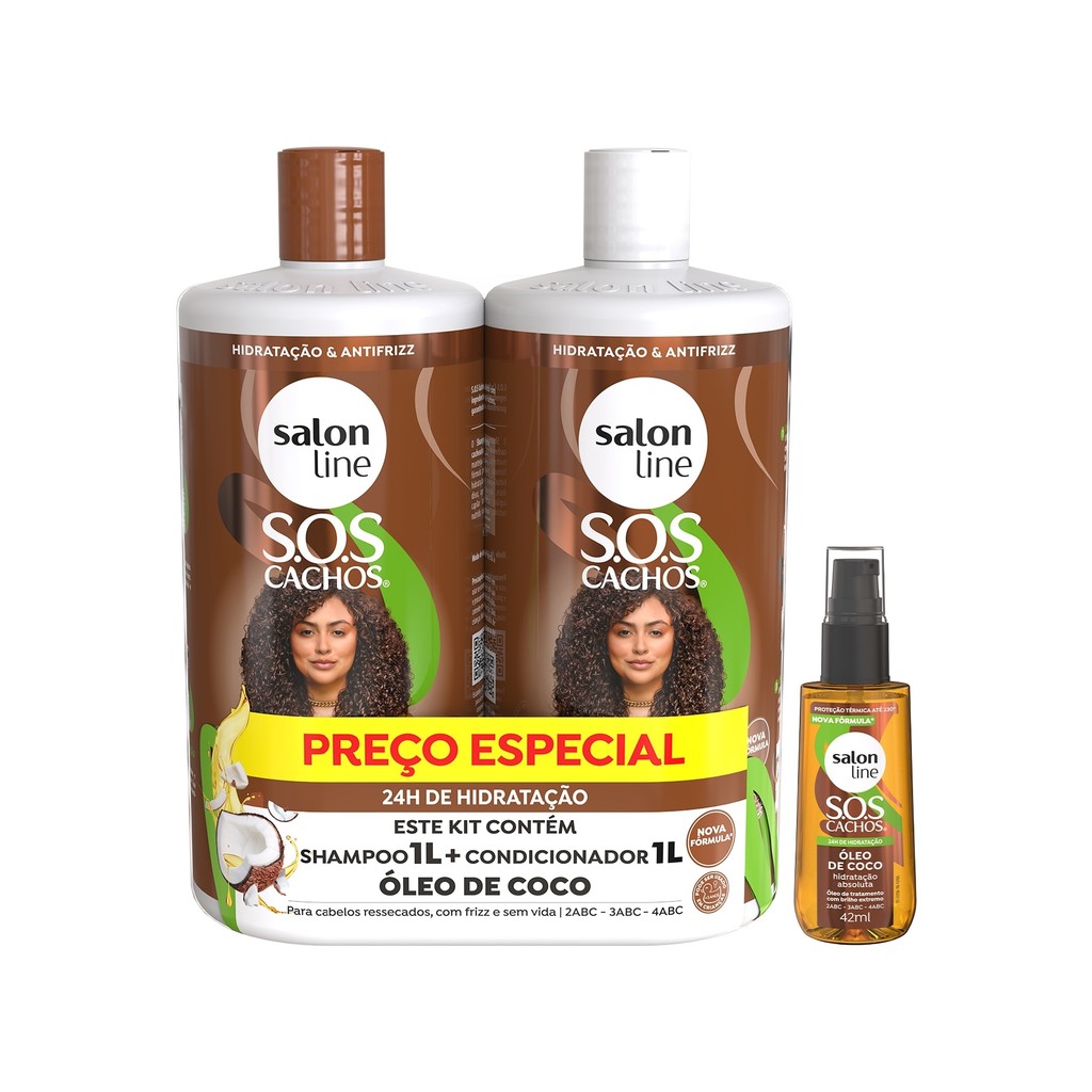 Kit SOS Cachos Coco Shampoo e Condicionador Litrão + Óleo