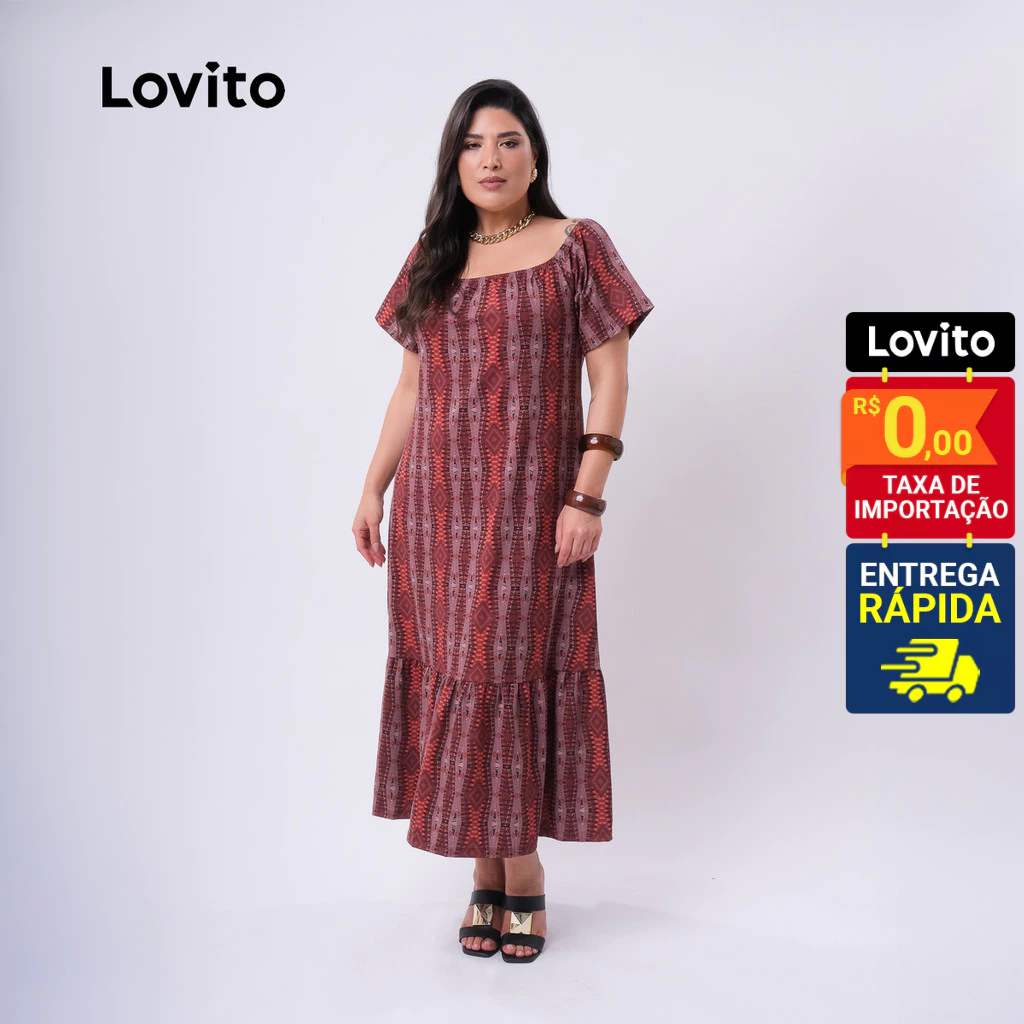Lovito Vestido Casual Geométrico Plus Size para Mulheres