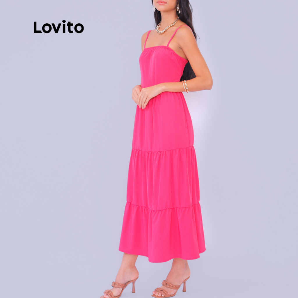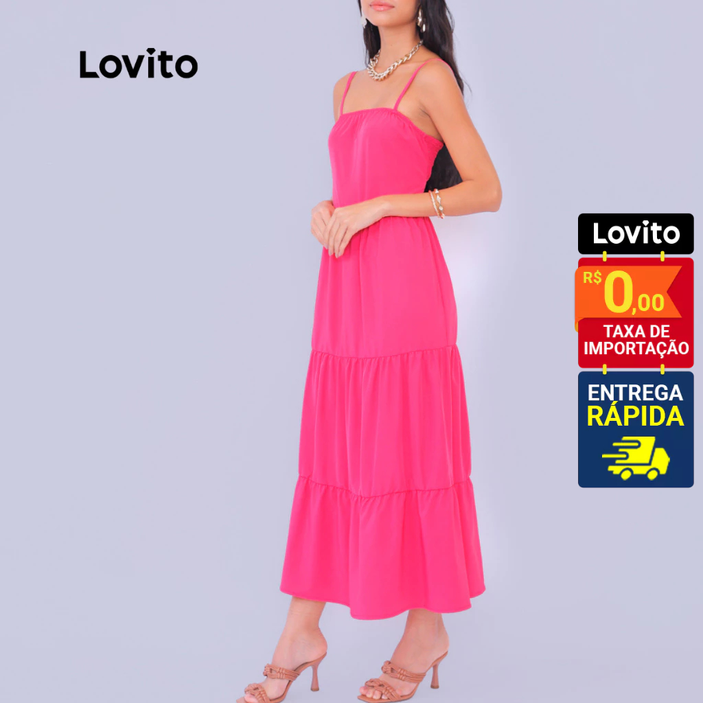 Lovito Vestido Elegante Liso com Babados para Mulheres