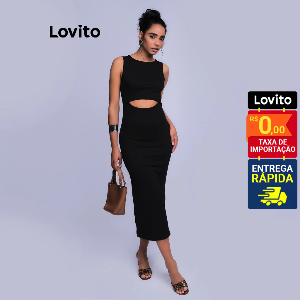 Lovito Vestido Midi Cut Out Casual Lisa para Mulheres