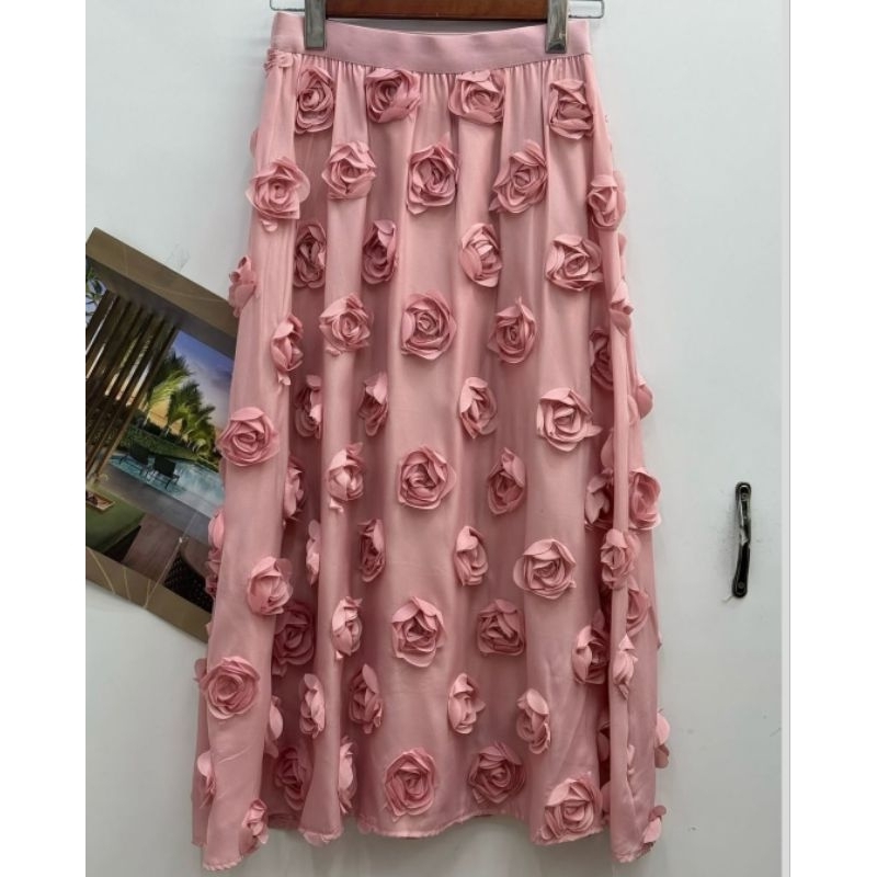 Saia Longa Cetim Com Detalhe de Rosa em 3D Estilosa Feminina