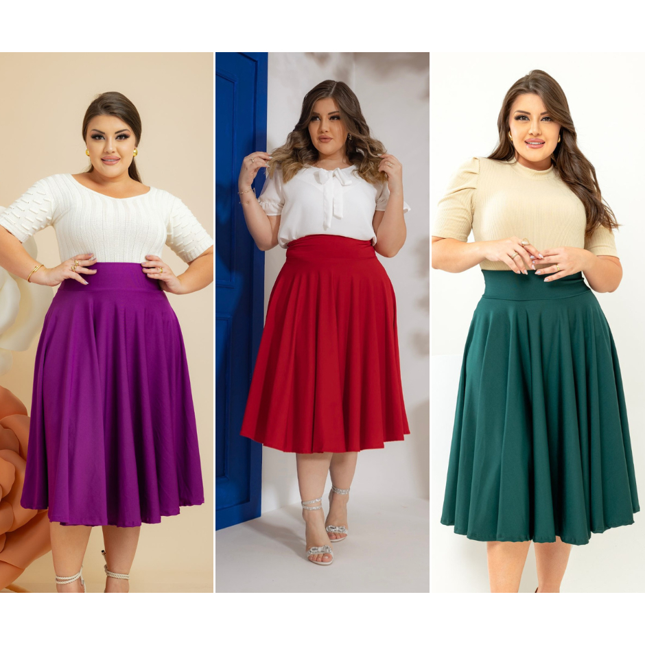 Saia Midi lisa Godê Várias Cores Super Chique P Ao G3