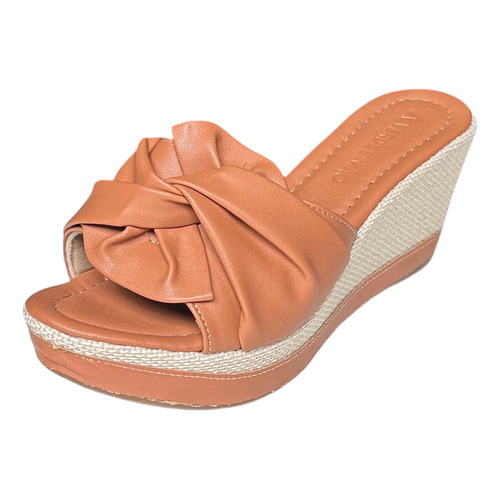 Sandália Anabela Tamanco Salto Baixo Confortável Com Amarração Salto 7 cm do 33 ao 41