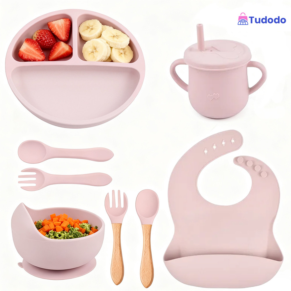 Talheres do Bebê Conjunto 8Pcs Prato De Jantar De Silicone Para Bebês Com Tigela De ventosa Sippy …