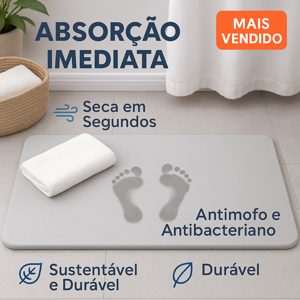 Tapete de Pedra Diatomita Para Banheiro Secagem Rápida 60cm x 39cm Antiderrapante Impermeável